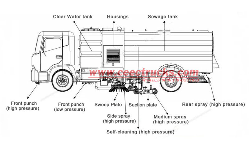 ♦ تتميز مجموعة الهيكل العلوي لشاحنة كنس الطريق بأوضاع تشغيل متعددة، حيث تتكيف مع بيئات متنوعة مثل الطرق والساحات العامة والمطارات.