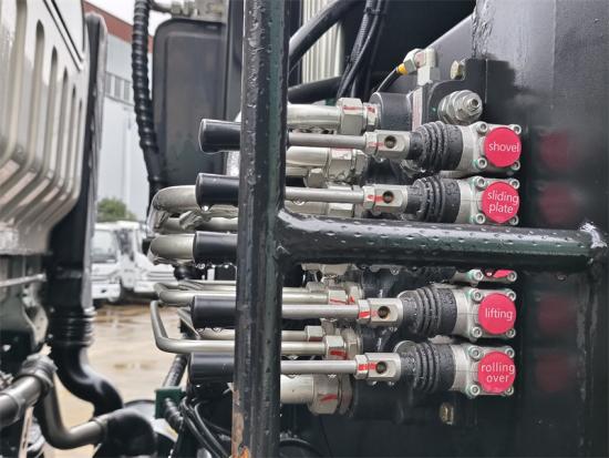 تعتمد شاحنة القمامة على صمام تحكم كهروهيدروليكي ونظام تحكم قابل للبرمجة PLC، مستفيدةً بشكل شامل من مزايا التحكم الكهربائي والهيدروليكي. ومن خلال التحكم الكهربائي الهيدروليكي المشترك، تُحلّ الشاحنة بفعالية مشكلة التداخل بين النظام الهيدروليكي والنظام الكهربائي، مما يُحسّن موثوقية الاستخدام.