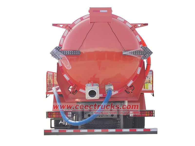 يمكن تجهيز أنبوب الشفط بفوهات أو فلاتر متنوعة لتلبية احتياجات الشفط في مختلف التطبيقات، مثل الأنابيب وخزانات الصرف الصحي. كما تتميز شاحنة الشفط الفراغي HOWO بصمام فيض يغلق مدخل الهواء تلقائيًا عندما يقترب مستوى السائل في الخزان من الحد الأقصى، مما يمنع ارتداد مياه الصرف الصحي وتلف مضخة التفريغ.