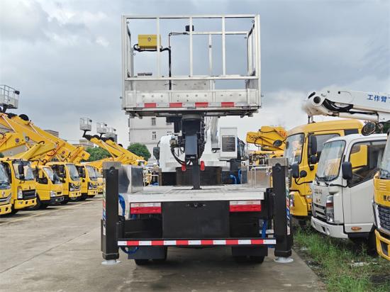 Insulation bucket can be achievedال شاحنة منصة جوية HOWO 22م شاحنة هندسية متخصصة تجمع بين الأداء التقني المتفوق وتصميم السلامة. صُممت الشاحنة على هيكل Howo رباعي الدفع، وهي مجهزة بمحرك ISF3.8S3154 بقوة قصوى تبلغ 154 حصانًا وكتلة إجمالية تبلغ 10,000 كجم، مما يوفر مرونة وقوة في التحكم. شاحنة Howo الخفيفة تتمتع شاحنة المنصة الجوية ذات الخدمة الشاقة بارتفاع عمل أقصى يبلغ 22 مترًا ونصف قطر تشغيل أقصى يبلغ 12 مترًا.