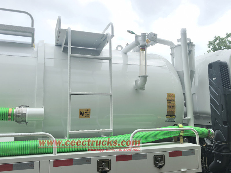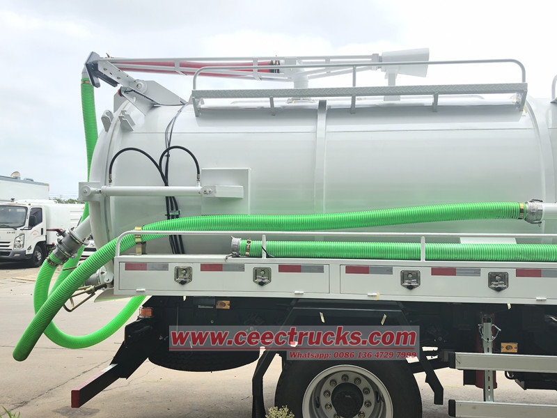 ➤ تم تجهيز الشاحنة بمضخة تفريغ عالية الأداء ومقياس ضغط التفريغ، مما يؤدي إلى توليد ضغط سلبي قوي بشكل مستمر لضمان شفط فعال.