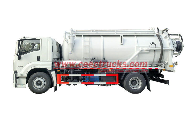 تُستخدم شاحنة شفط مياه الصرف الصحي Isuzu GIGA (وتسمى أيضًا شاحنة المكنسة الكهربائية، وشاحنة تنظيف مياه الصرف الصحي، وشاحنة شفط مياه الصرف الصحي، وشاحنة شفط المجاري سعة 10000 لتر، وما إلى ذلك) لجمع ونقل وتفريغ السوائل مثل المياه القذرة والطمي والصرف الصحي والنفط الخام والمواد الصلبة مثل الحجارة الصغيرة والطوب أيضًا.