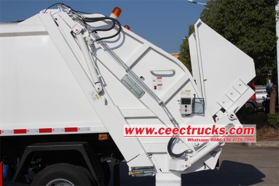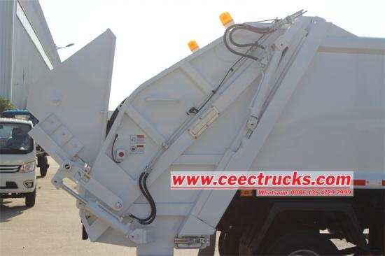 Isuzu 600p 4x4 Compactor Compactor Truck هي وسيلة خاصة لجمع القمامة والتخلص منها يتم تعديله على الهيكل الخفيف ISUZU 600P 4X4 ، قاعدة عجلات 3815 مم ، مزودة بمحرك 4KH1CN6LB 120HP ، ISUZU MSB 5 سرعات العلبة ، إزاحة 2999ML ، عزم الدوران الأقصى هو 290N م الجزء العلوي عبارة عن صندوق قمامة من الصلب الكربوني المكعب 8 ، وهي آلية فليب شبه ختم ثلاثية في الذيل يتم التحكم في السيارة بواسطة نظام التحكم الإلكتروني PLC ، ونظام التحكم في الصمام الهيدروليكي.