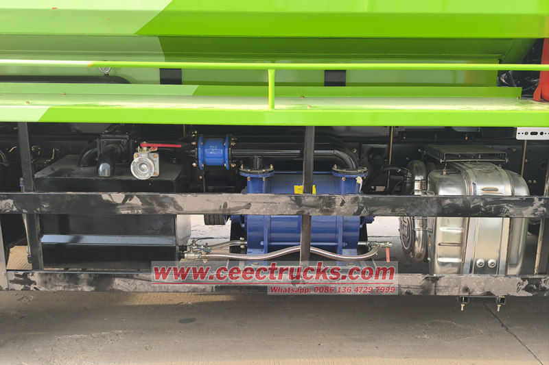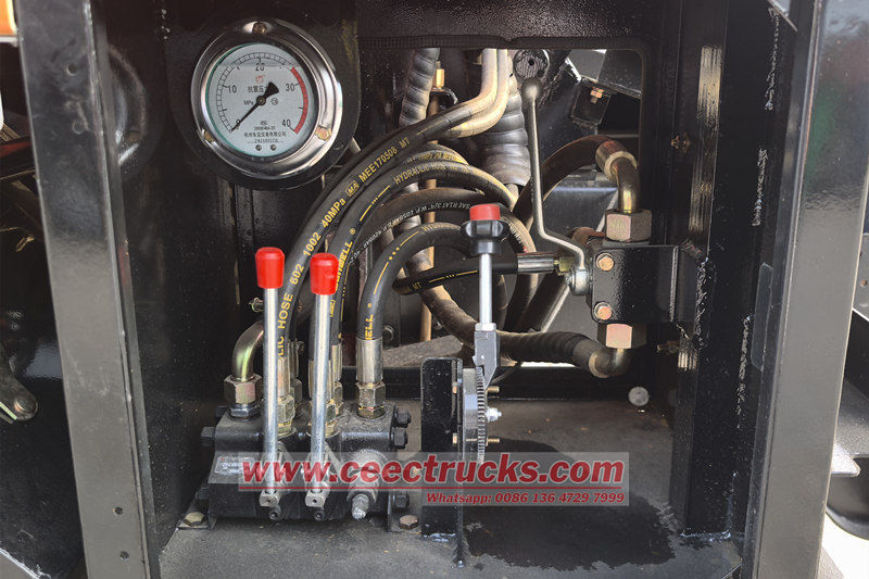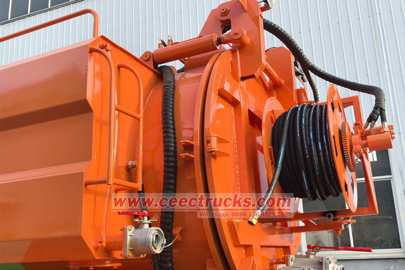المركبة مُجهزة بمضخة مياه عالية الضغط لرفع ضغط المياه النظيفة إلى ما بين 16 و240 ميجا باسكال، وتقوم بإزالة الانسدادات العنيدة، مثل الرواسب وجذور الأشجار والكتل الخرسانية، من الجدار الداخلي لخط الأنابيب عبر فوهة دوارة. وفي الوقت نفسه، تُستخدم مضخة تفريغ لتشكيل ضغط سلبي في جسم الخزان، مما يسمح بسحب الحمأة المسحوقة ومياه الصرف الصحي إلى داخله عبر أنبوب شفط مياه الصرف. ويُستخدم الونش الهيدروليكي للتحكم في تمدد وتقلص أنبوب الضغط العالي طوال العملية، لضمان قدرة المُشغّل على إكمال عملية التجريف العميق لخط الأنابيب دون الحاجة إلى النزول إلى البئر.