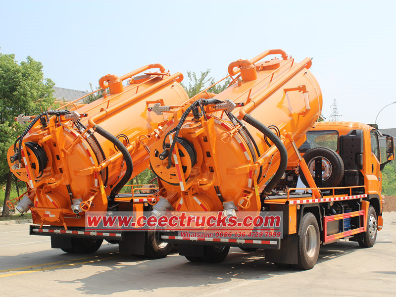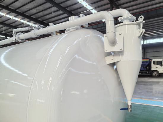 يتكون هيكل شاحنة صهريج الصرف الصحي بشكل أساسي من خزان تفريغ سعة 10 أمتار مكعبة، ومضخة تفريغ، وخرطوم شفط، ونظام هيدروليكي. الخزان مصنوع من فولاذ عالي القوة، مما يضمن إحكامًا ممتازًا يمنع التلوث الثانوي. توفر مضخة التفريغ "مورو" شفطًا قويًا، وتستخرج الحمأة ومياه الصرف الصحي والطين بسرعة. يمكن تشغيل أنبوب شفط مياه الصرف الصحي بمرونة لتلبية احتياجات سيناريوهات التشغيل المتعددة.